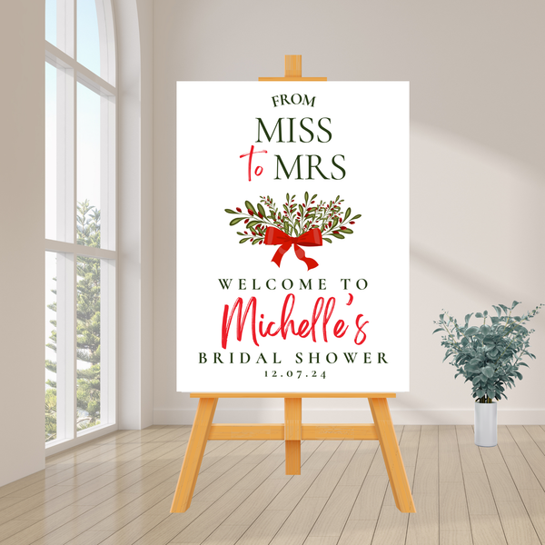 Editable Christmas From Miss To Mrs Welcome Sign – Christmas Theme, Instant Download, Canva Template, 18x24, 20x30, 24x36