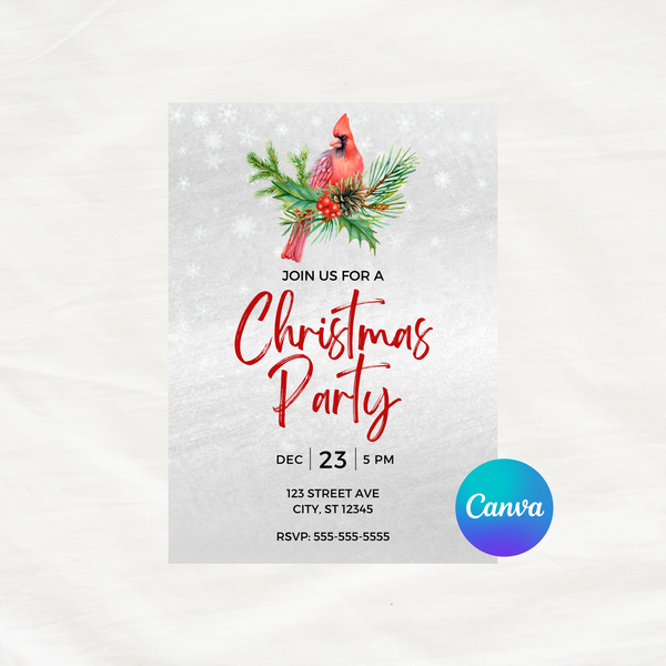 DIGITAL DOWNLOAD ONLY Red Cardinal Christmas Party Editable Invitation 5x7