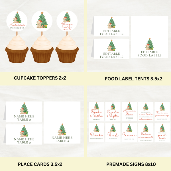 Editable Christmas We Can Bearly Wait Baby Shower Bundle Set | Christmas Theme | Instant Download | Edit With Canva