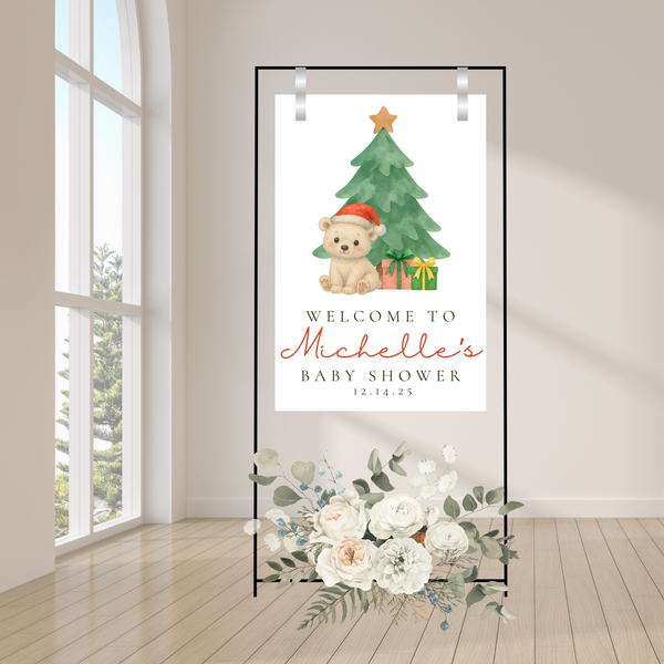 Editable Christmas We Can Bearly Wait Baby Shower Welcome Sign | Christmas Theme | Instant Download | Canva Template | 18x24, 24x36