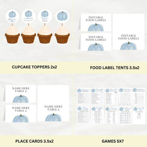 Editable Fall Something Blue Before I Do Bridal Shower Bundle Set | Blue Pumpkin | Fall Theme | Instant Download | Canva Template