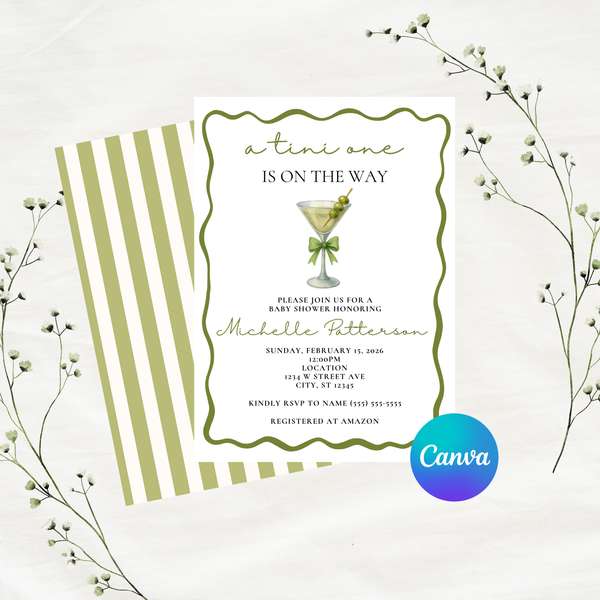 Editable Green A Tini One Is On The Way Baby Shower Invitation | Instant Download | Canva Template | 5x7