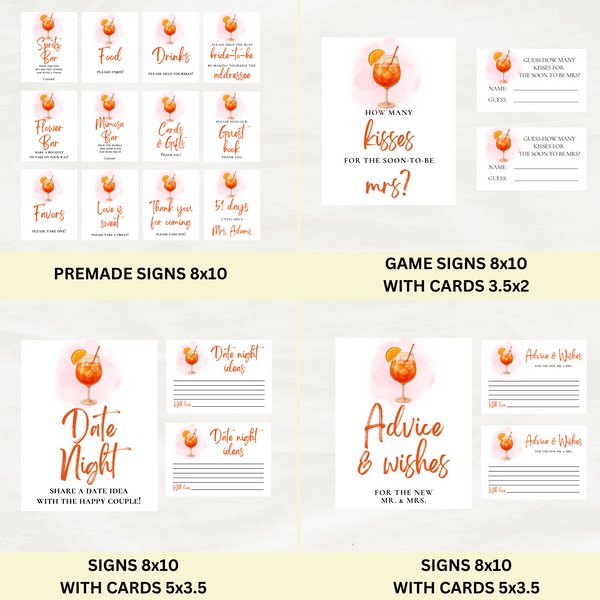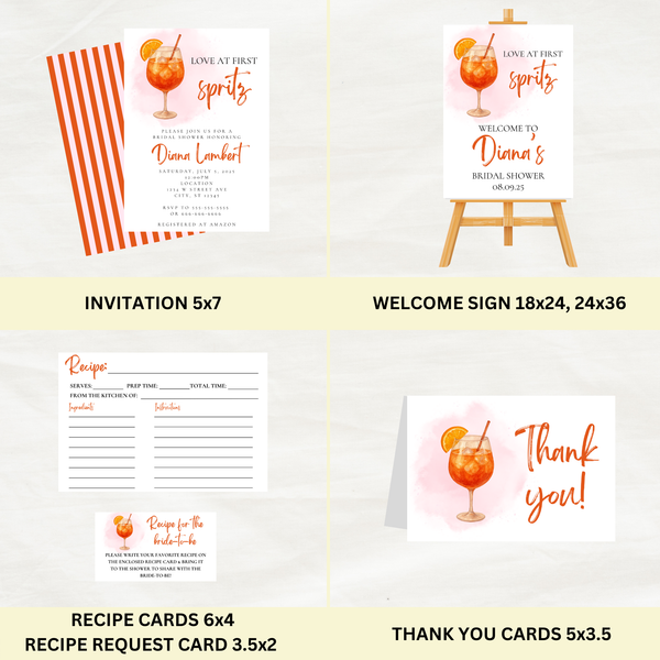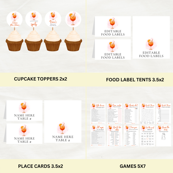 Editable Love At First Spritz Bridal Shower Bundle Set | Aperol Spritz Theme | Instant Download | Canva Template