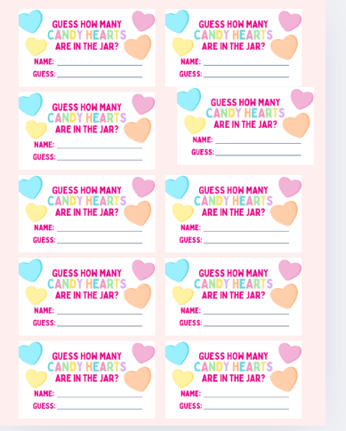 INSTANT DOWNLOAD Valentine's Day Candy Hearts Themed Guess How Many Candies Are In The Jar Guessing Game